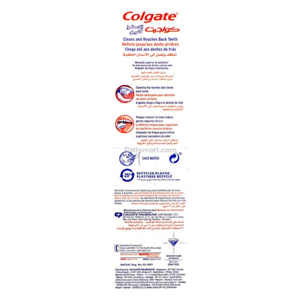 Colgate Extra Clean full head & soft bristles medium toothbrush effectively cleans each & every tooth. Manual toothbrush with an easy-to-grip handle while brushing for more comfort. Soft bristles remove tooth stains easily.