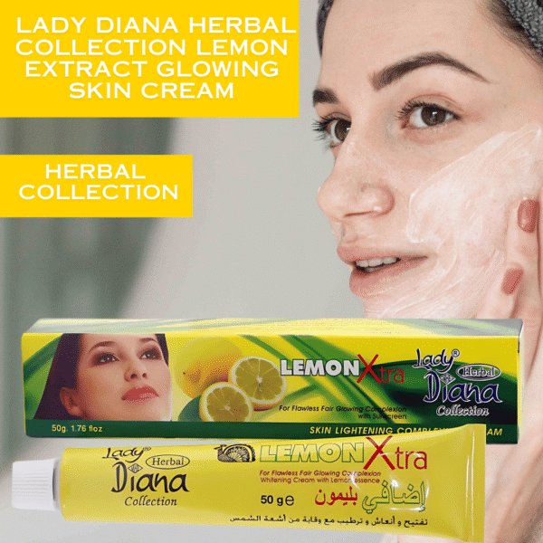 Lady Diana Lemon Extra Skin Lightening Cream contains a creamy ultra-rich formula for facial skin nourishment, restoring skin’s natural barrier and makes it all even toned. It gives radiant, moisturized and healthy light skin.