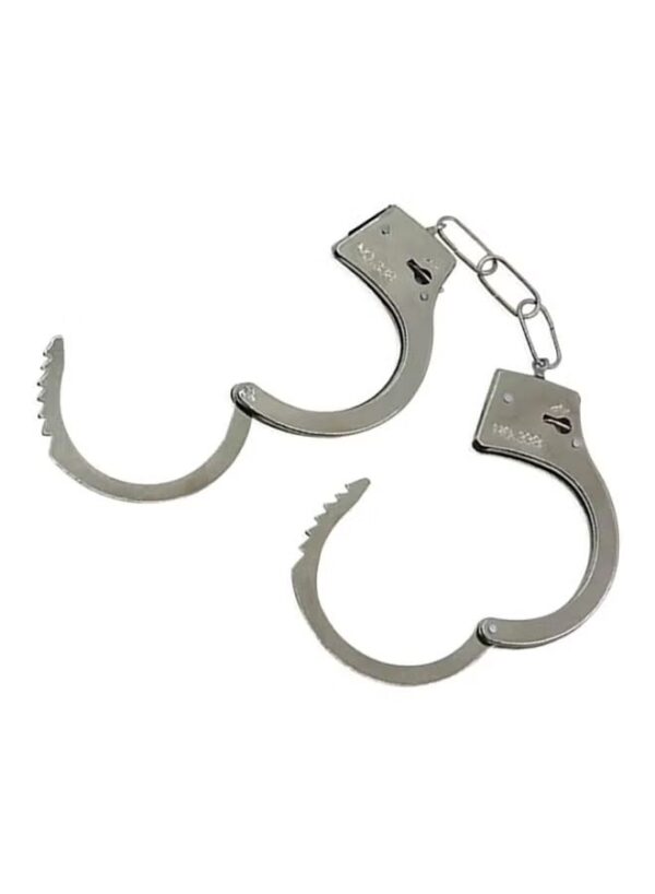 - Two cuffs are joined with steel chains, and each cuff is secured with the pawl-and ratchet system